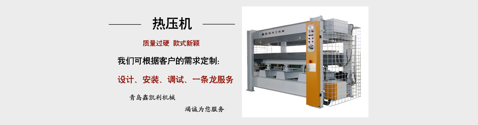 青島鑫凱利木工機械有限公司公司主營:各種款式熱壓機、定制異形熱壓機、冷壓機、涂膠機等木工設(shè)備